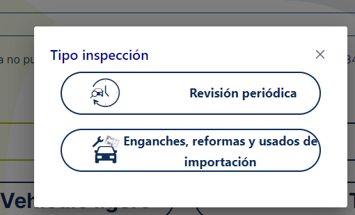 Continúa con la selección del tipo de inspección que vas a realizar. Lo típico es la revisión periódica de ITV, aunque pueden existir otras como la inspección por instalación de enganches o reformas en el vehículo.